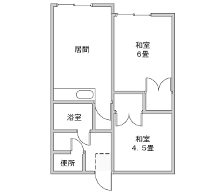 44.55平方メートル、2LDK